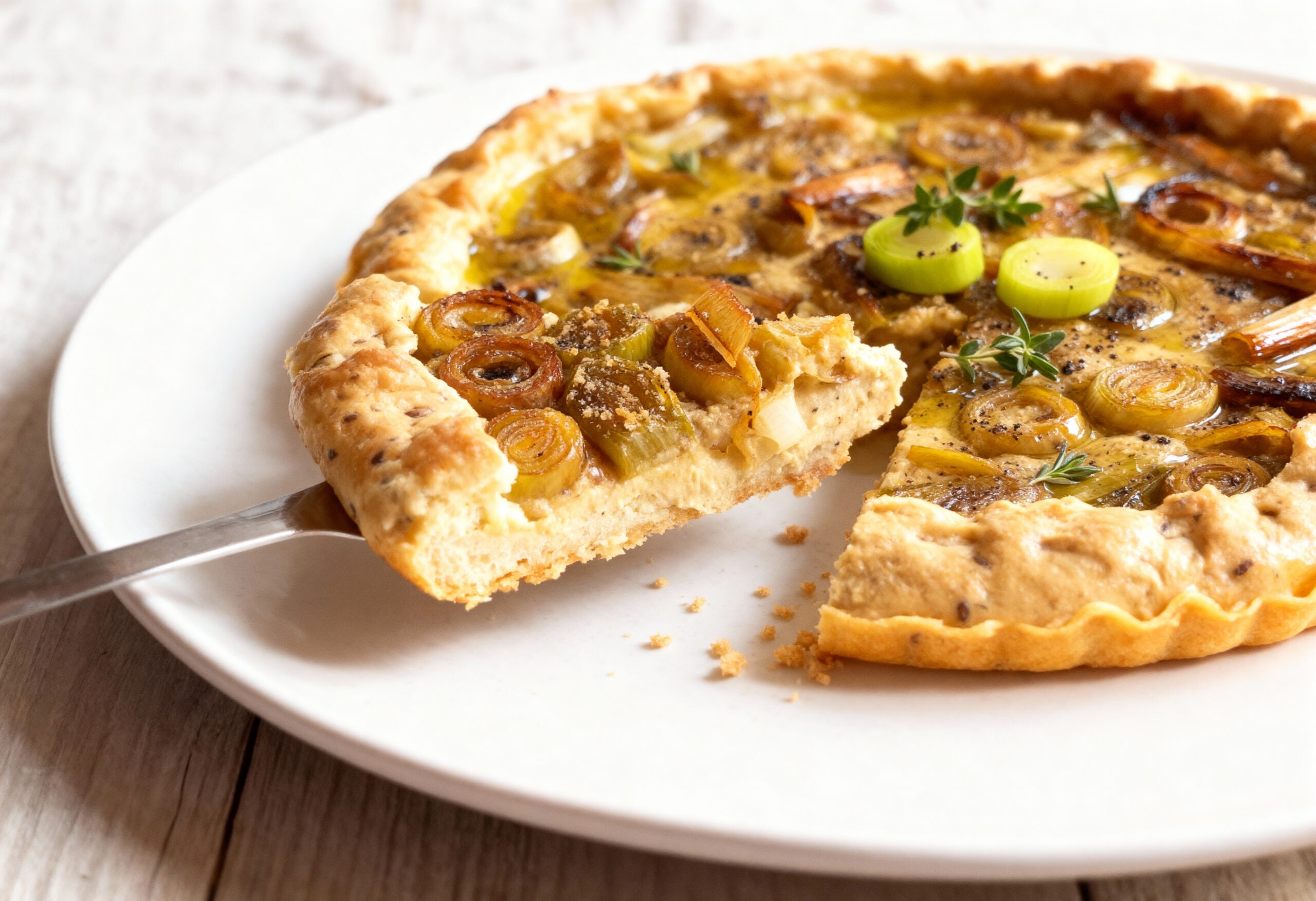 Cospargete la pasta brisè di hummus e adagiateci sopra i porri cotti. Chiudete i bordi e cuocete in forno statico a 200°C per 20-25 minuti.